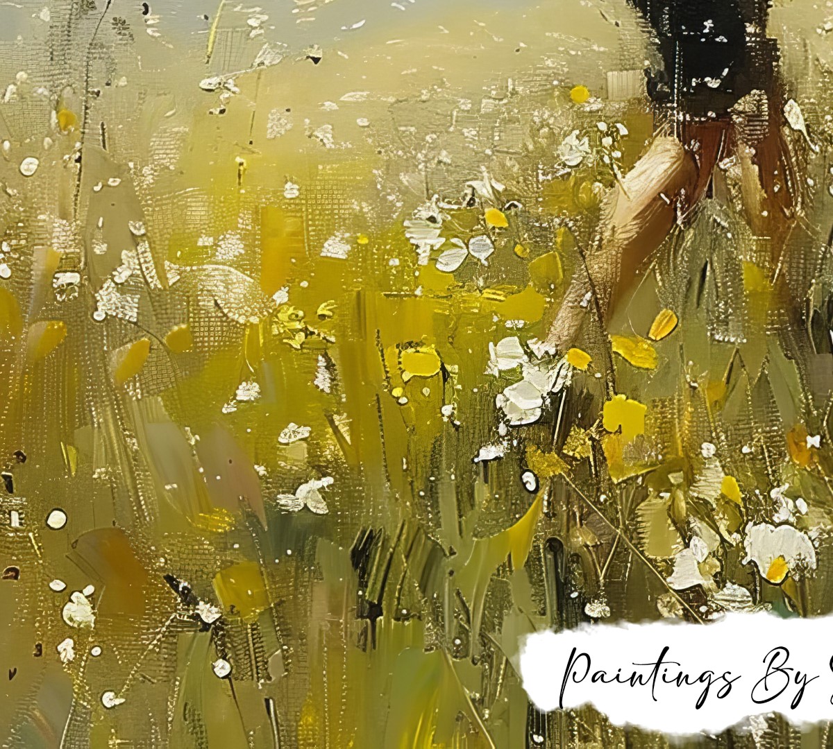 Experience the beauty of nature with this dreamlike painting of a child in a flower field. Immerse yourself in the captivating colors and textures. ✨