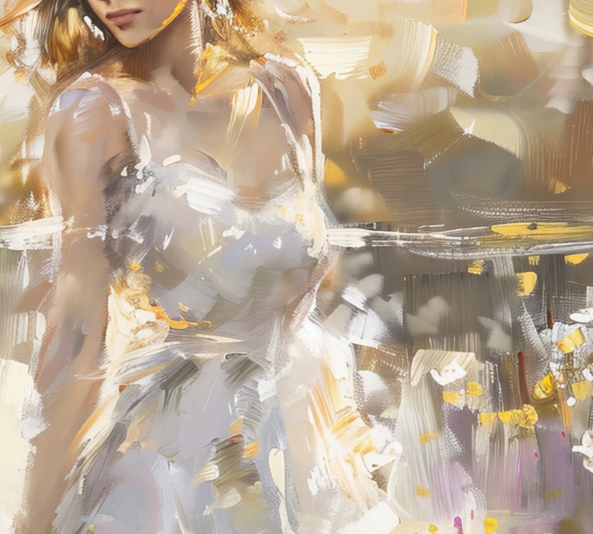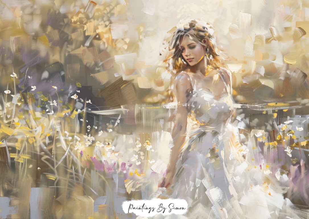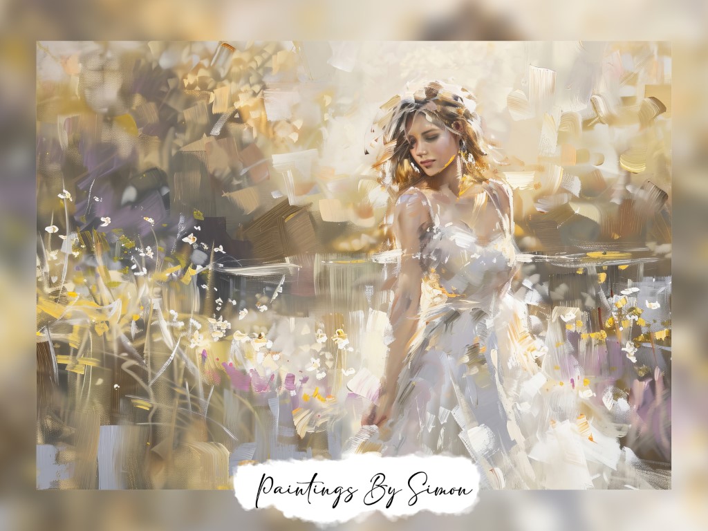 Discover the enchanting beauty of an ethereal woman in this dreamlike painting, perfect for adding a touch of elegance and mystique to any space.