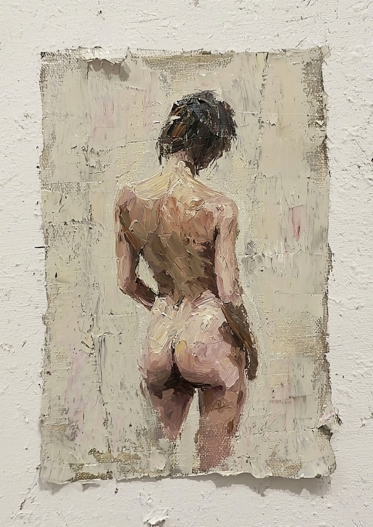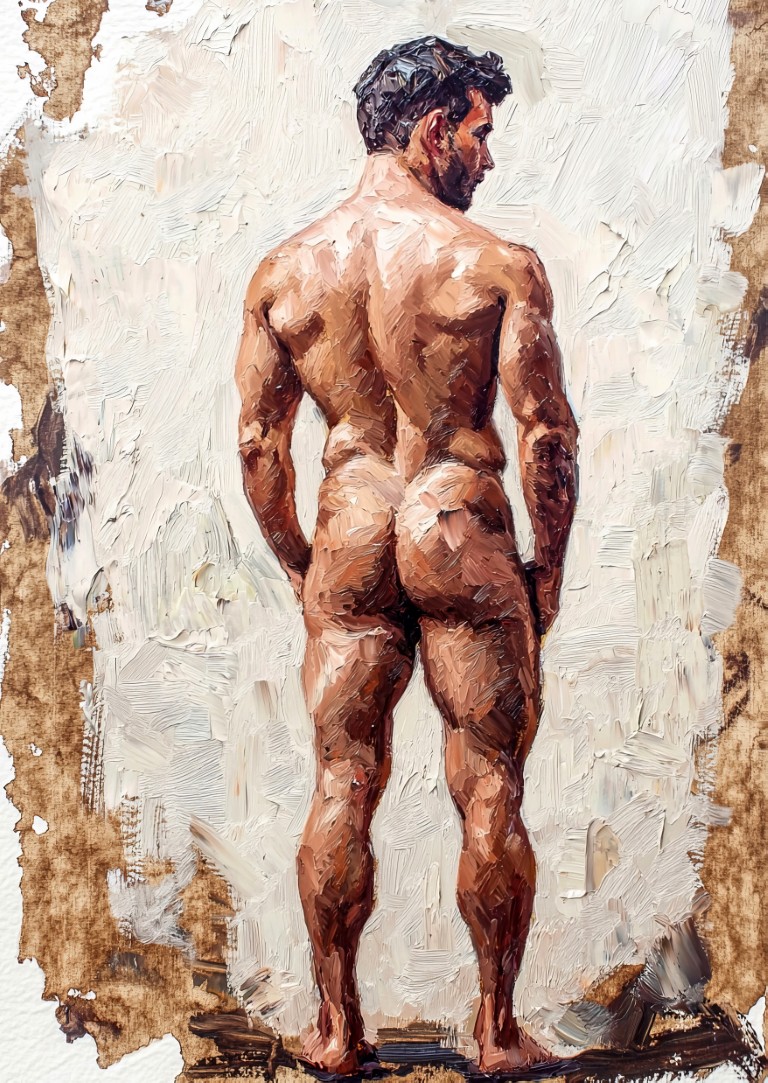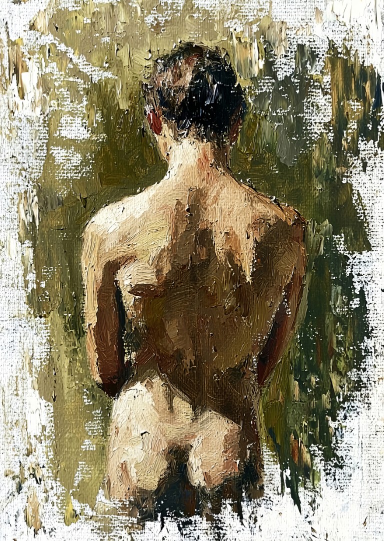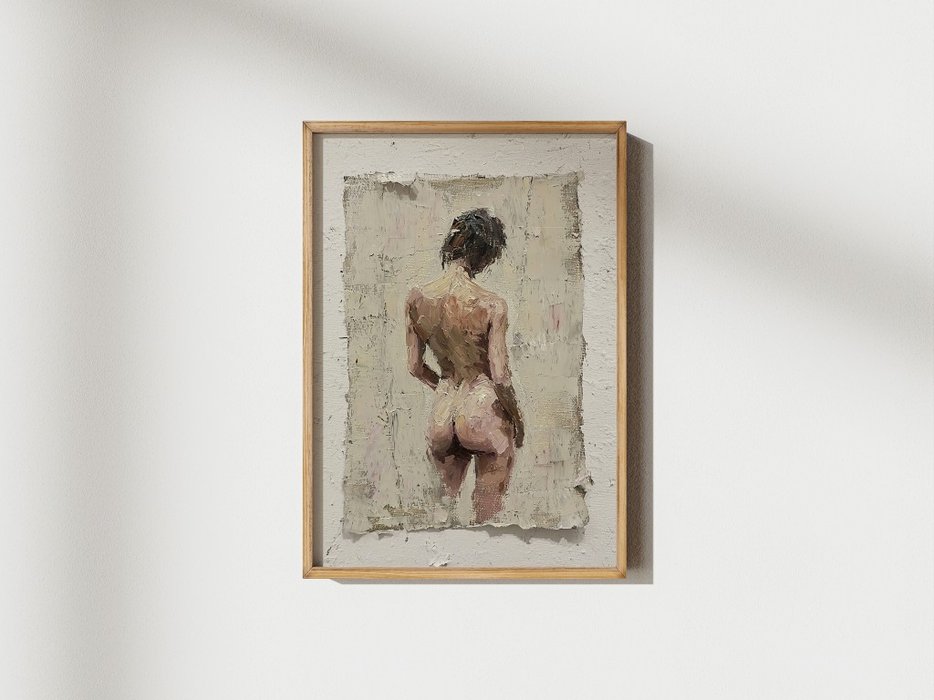 Furthermore, the warm, earthy tones blend seamlessly with thick layers of paint, creating a striking contrast against the neutral backgrounds. As a result, the fine details of musculature and posture stand out, drawing the eye to the natural curves of each figure. In addition, each pose is unique, emphasizing the grace and strength of the human body. Meanwhile, the expressive strokes and abstract edges add a sense of depth, making every piece feel alive and full of energy.