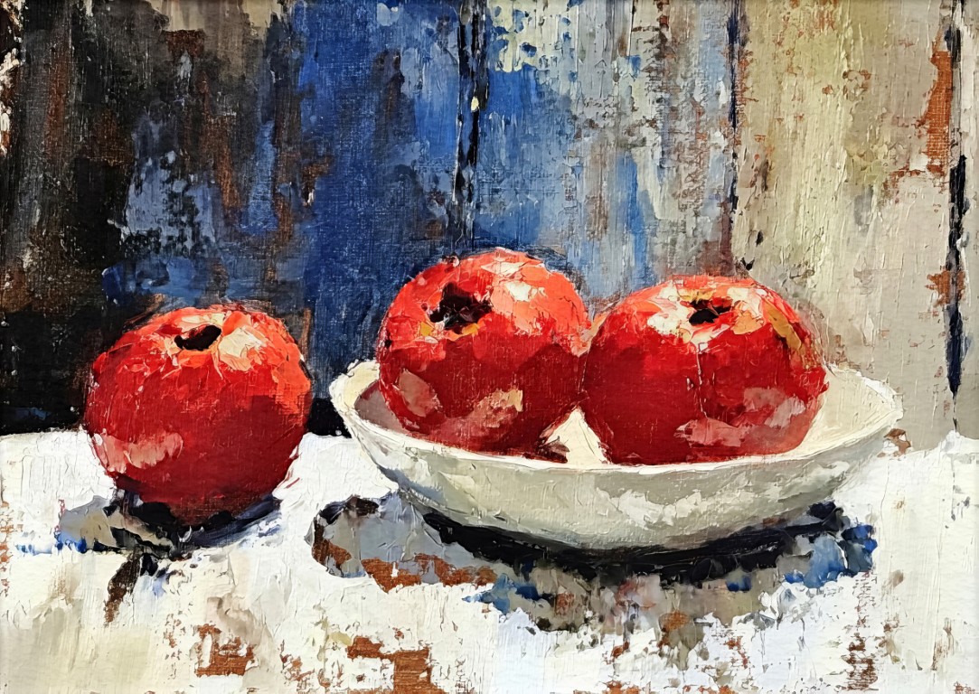 Key Points of Rustic Still Life | Bold and Textured Painting of Pomegranates in a Bowl