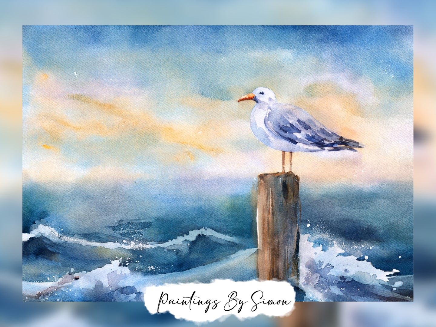 Capture the serene beauty of the seaside with this mesmerizing Seagull Watercolor painting. Let the tranquil colors and gentle strokes transport you to a place of calmness.