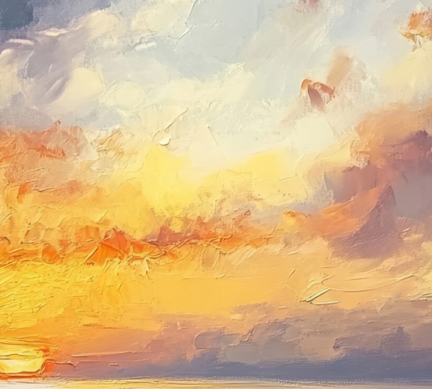 This serene sunset boat painting captures the tranquil beauty of twilight. Moreover, a lone boat gently floats on the calm water, reflecting the vibrant colors of the sunset. The sky is painted in warm hues of orange, pink, and purple, creating a peaceful atmosphere.