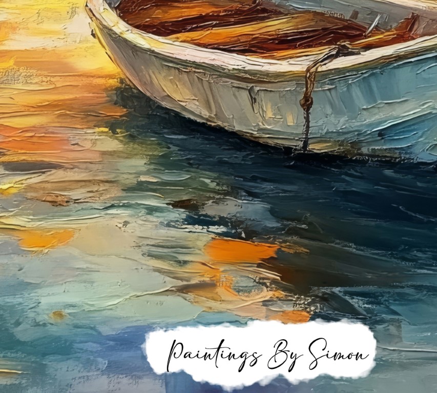Additionally, the artist uses bold, expressive brush strokes to convey the scene’s emotion. The detailed depiction of the boat contrasts beautifully with the soft, blurred background. This painting evokes a sense of calm and relaxation, perfect for any room.