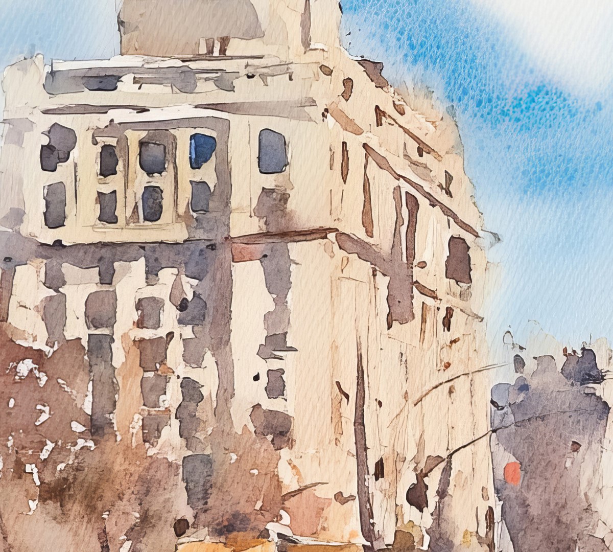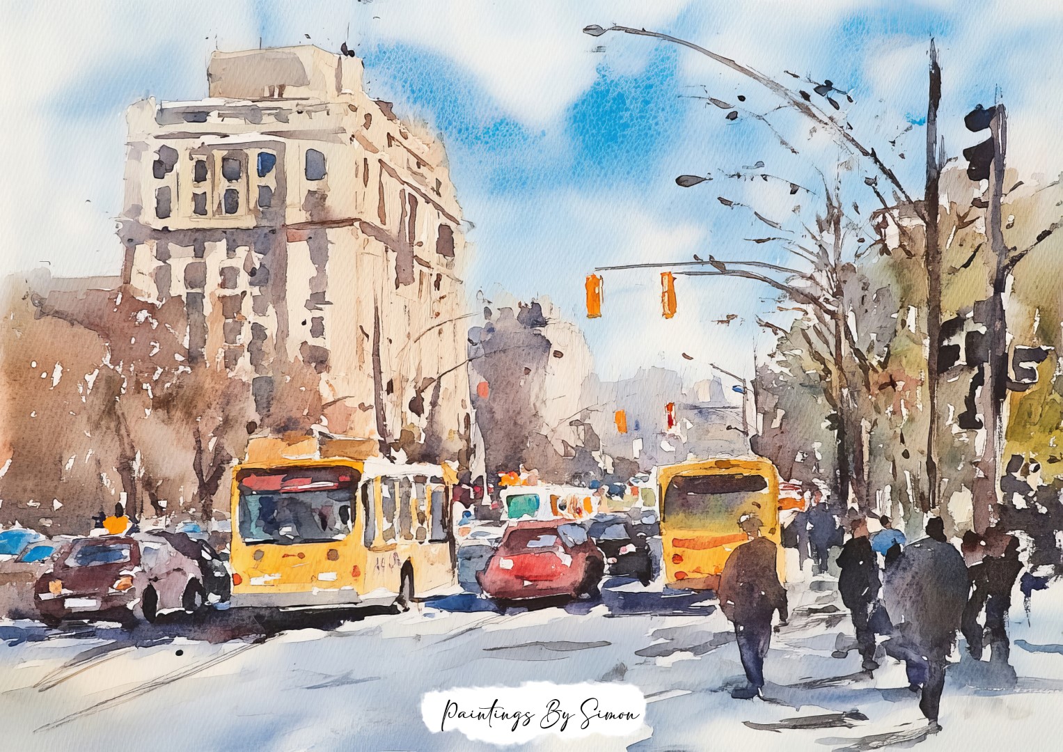 - Bustling Urban Scene: Matte print capturing a lively city street in watercolor